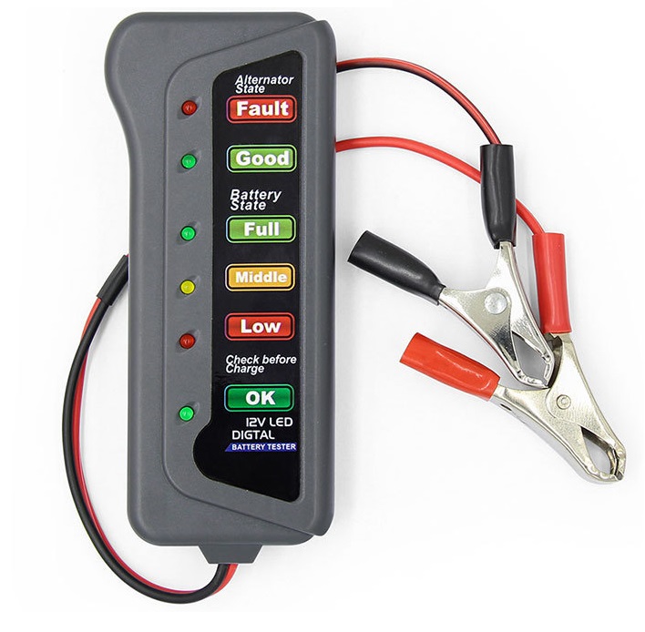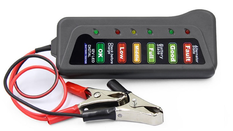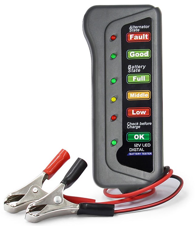 This is a compact and handheld tester for automotive car batteries. The device can be used to test the status of the car battery (12V) as well as the alternator connected to it.