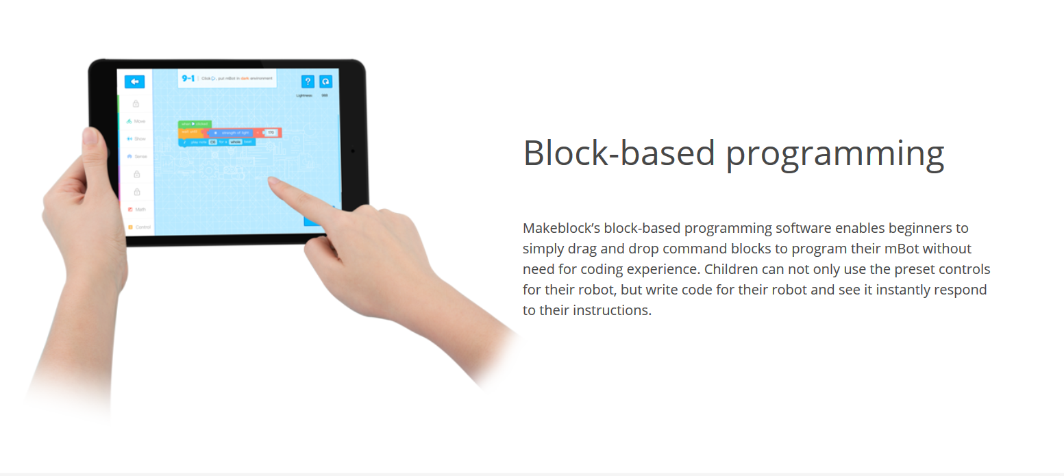 - Simple drag and drop enables user to command the mBot even without coding experience.