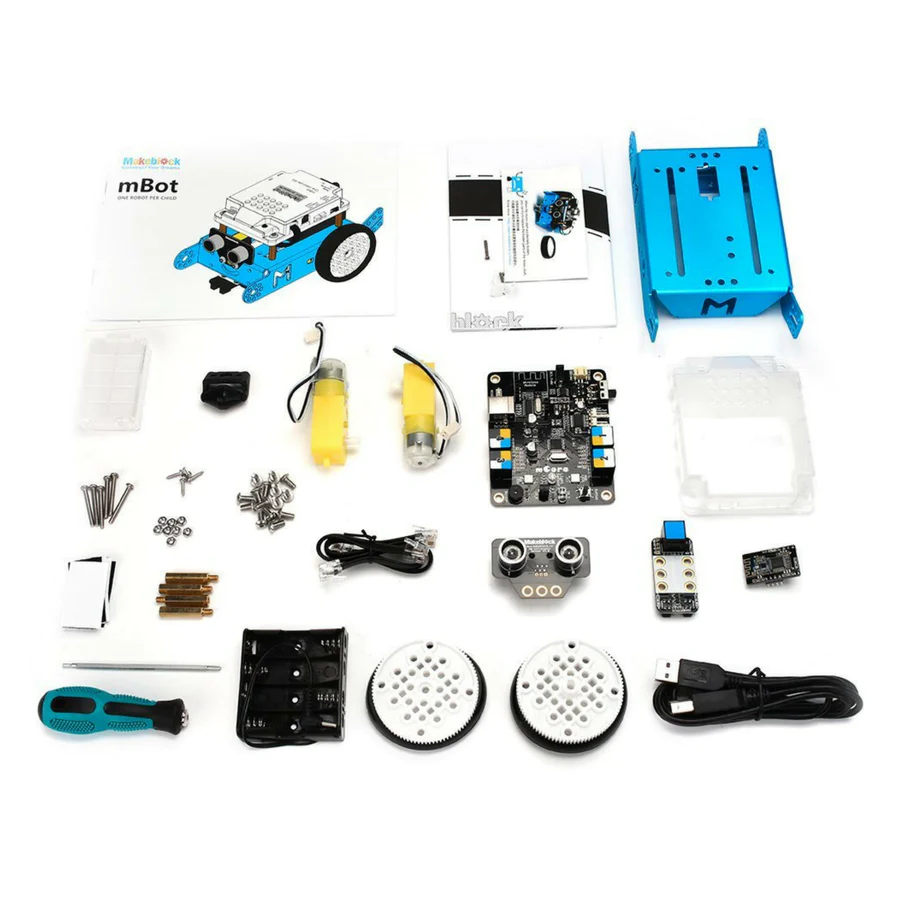 The mBot is an excellent tool for kids of all ages to boost their knowledge and interest in robotics, electronics, and programming. Inspired by Scratch 2.0, the mBlock seamlessly connects with Bluetooth or the 2.4GHz wireless module. This all-in-one solution is easy to assemble and provides limitless possibilities for kids to learn STEM (Science, Technology, Engineering, Mathematics).