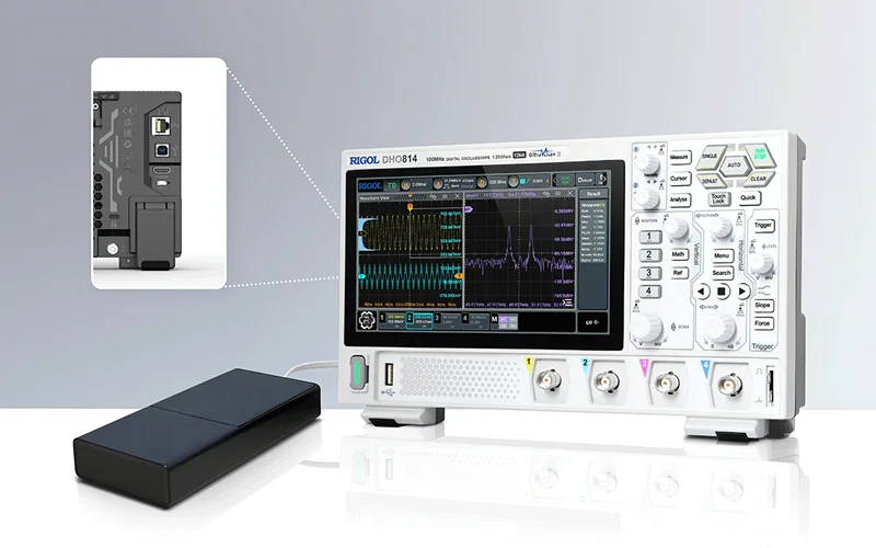 - With USB, LAN, and HDMI interfaces, the DHO812 supports remote control and collaboration, making it adaptable for both solo and team environments. The Type-C power compatibility adds convenience, enabling operation through a portable power bank for testing in various locations.