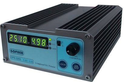 Provides a range from 0-32V and current from 0-5Amps. It allows selection of constant voltage and constant current mode also.